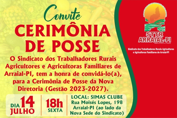 STTR de Arraial convida para posse da nova Diretoria 2023-2027